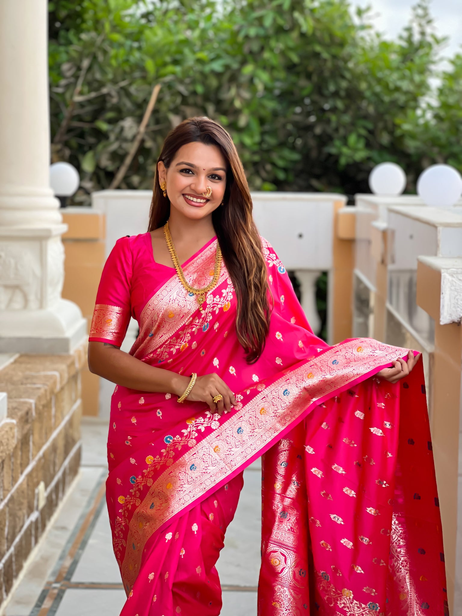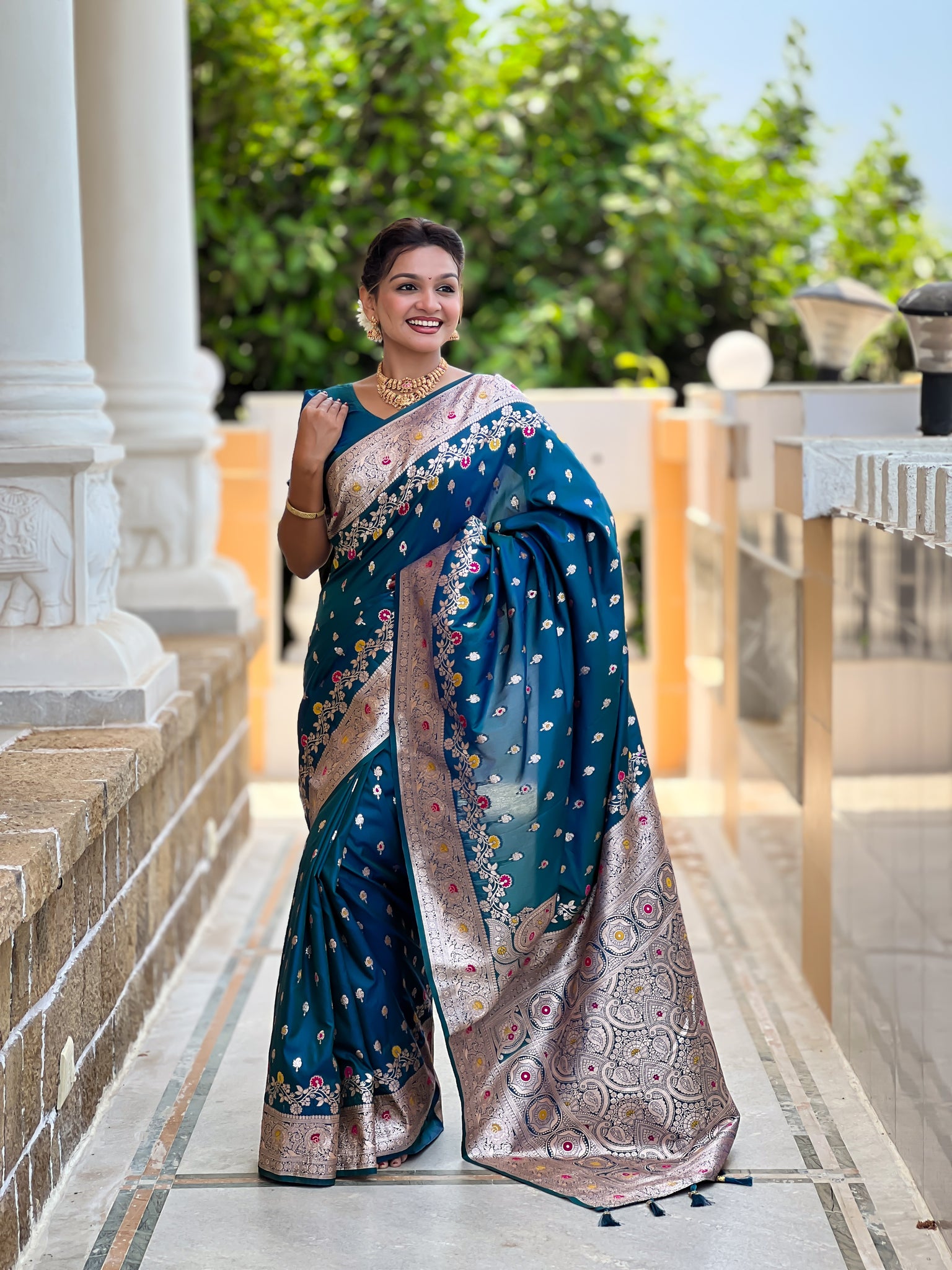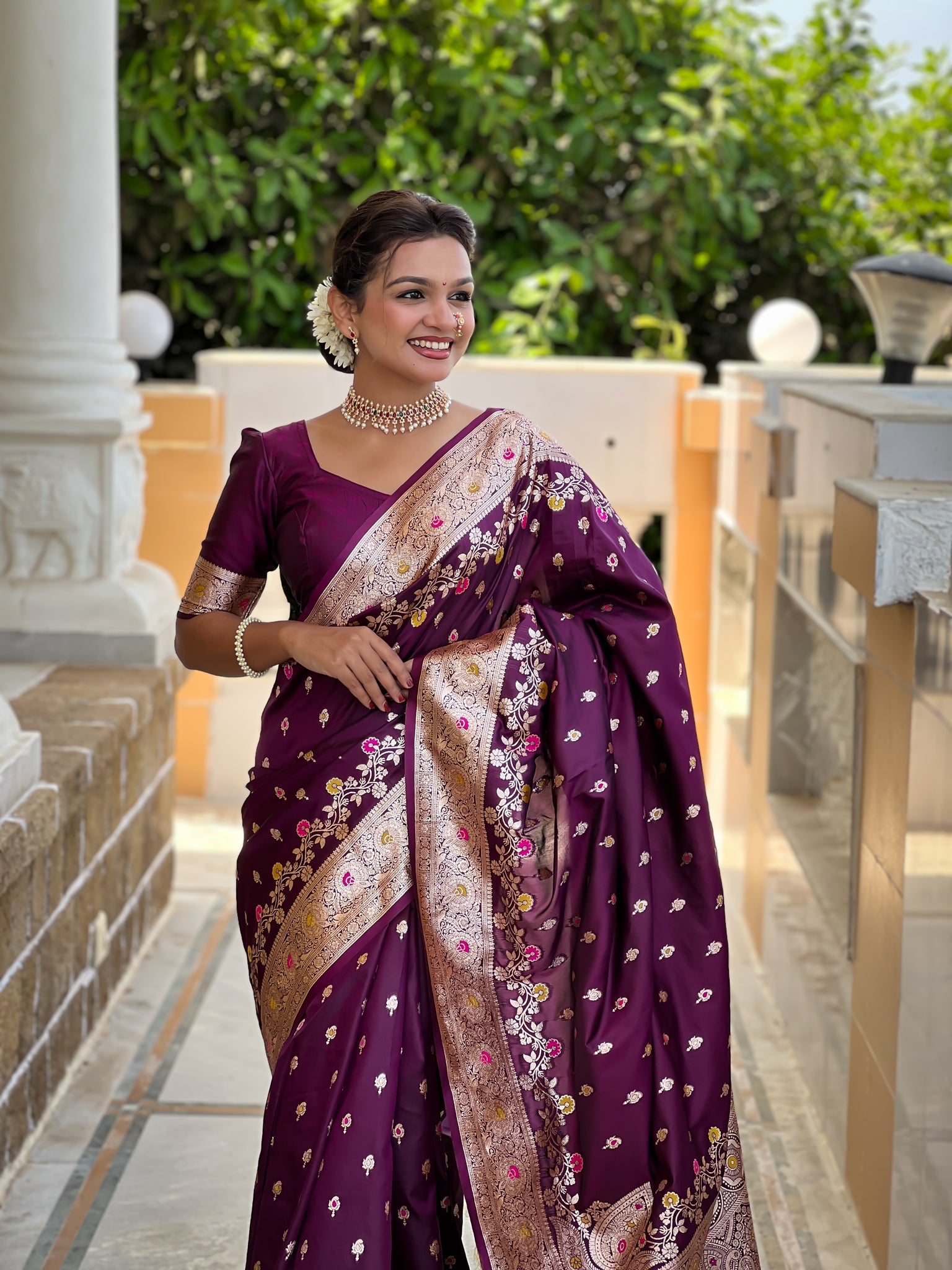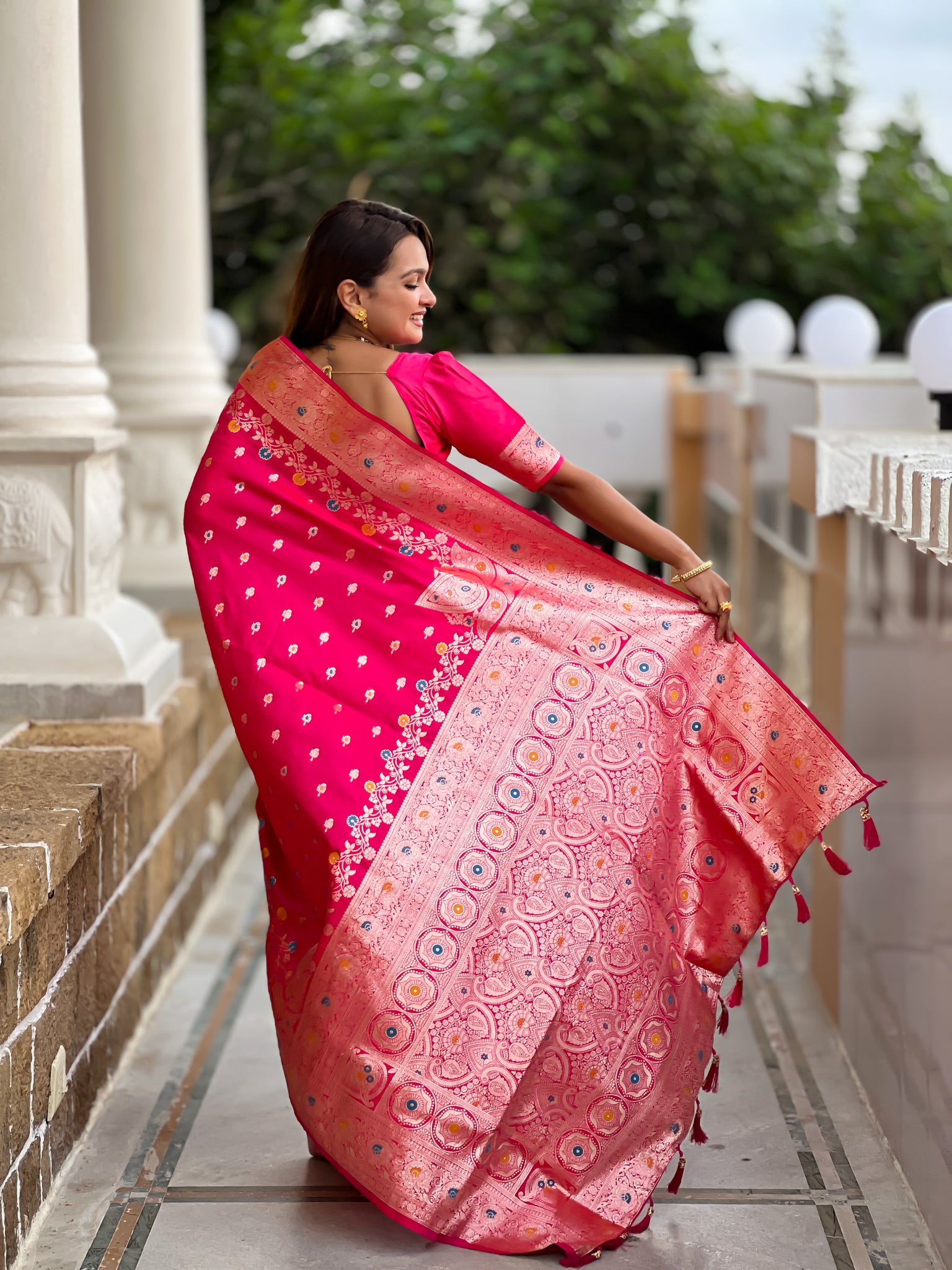 Mini Flower Soft Banarasi Silk Saree with Zari & Meenakari Weaving