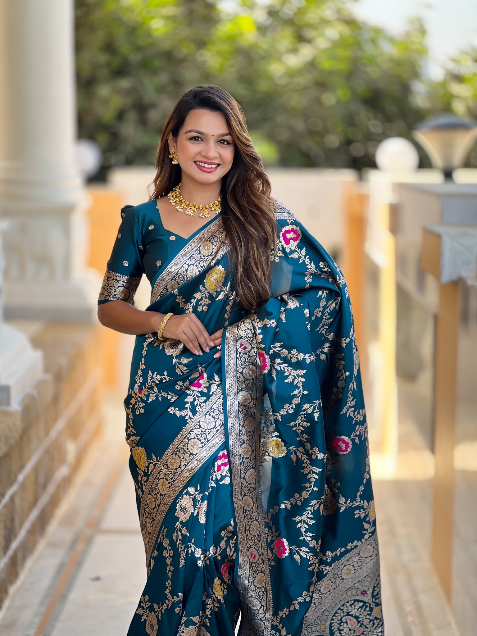 Morpich Soft Banarasi Silk Saree with Zari & Meenakari Weaving