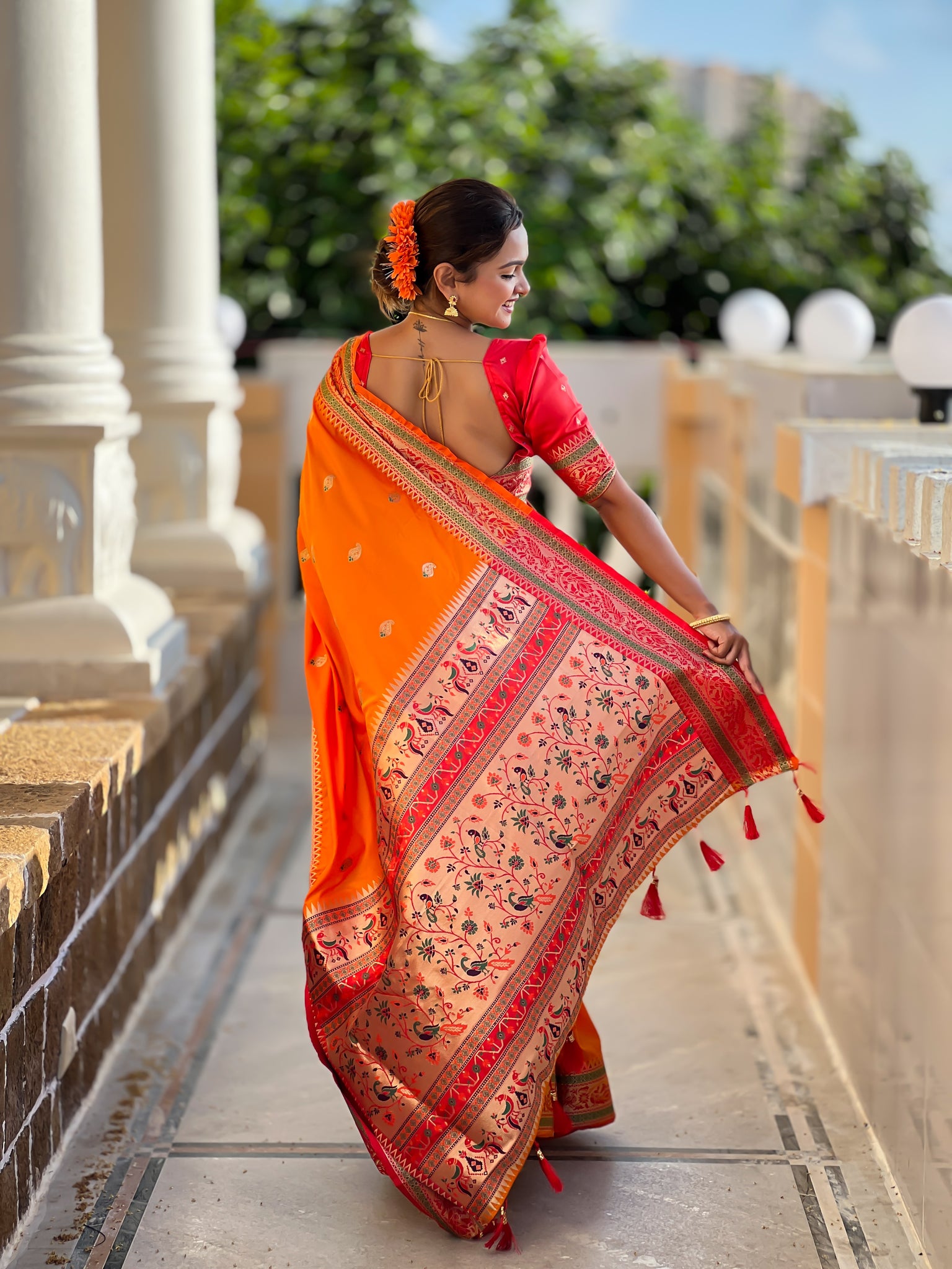 Orange Paithani Silk Saree